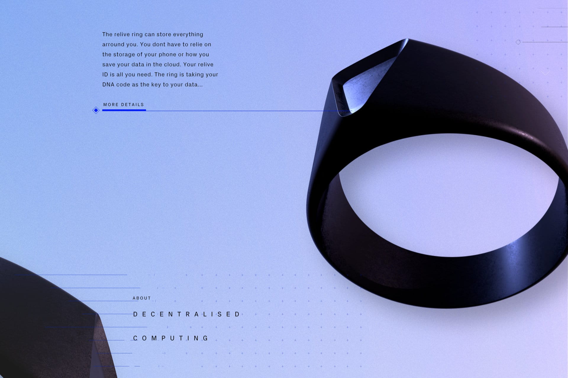 A ring to store data as personally and directly as possible. A ring is a symbol and acts as an interface to the relive cloud. The ring is a natural interface, as the cloud is primarily responsible for sensor management and networking.