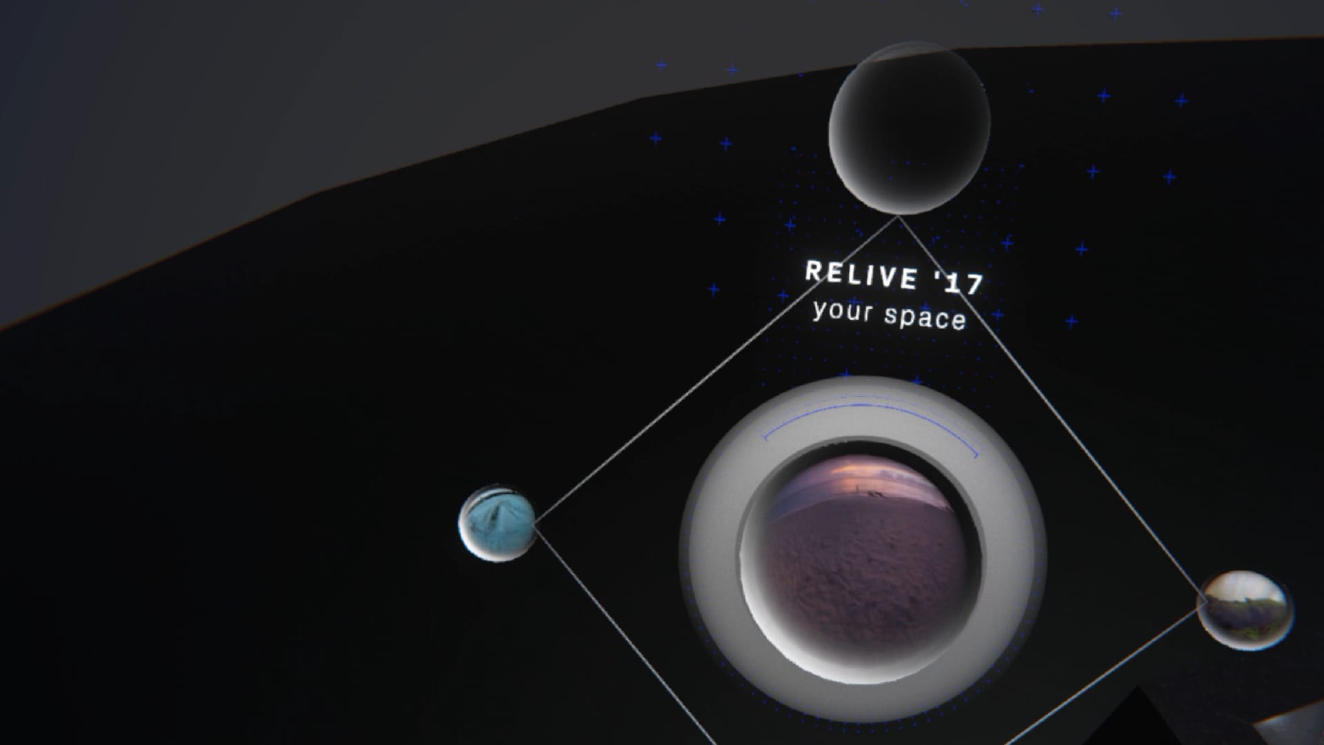The interaction concept is based on a device-typical controller interaction that claims to be native and responsive. Memory worlds are stored in spheres, which can be detached from the interface and placed on the head.